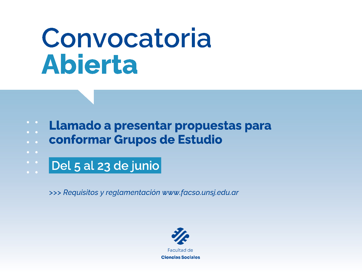 La Facultad de Ciencias Sociales informa que se abre la convocatoria para conformar Grupos de Estudios, los que una vez presentados, deberán ser aprobados por el Consejo Directivo.