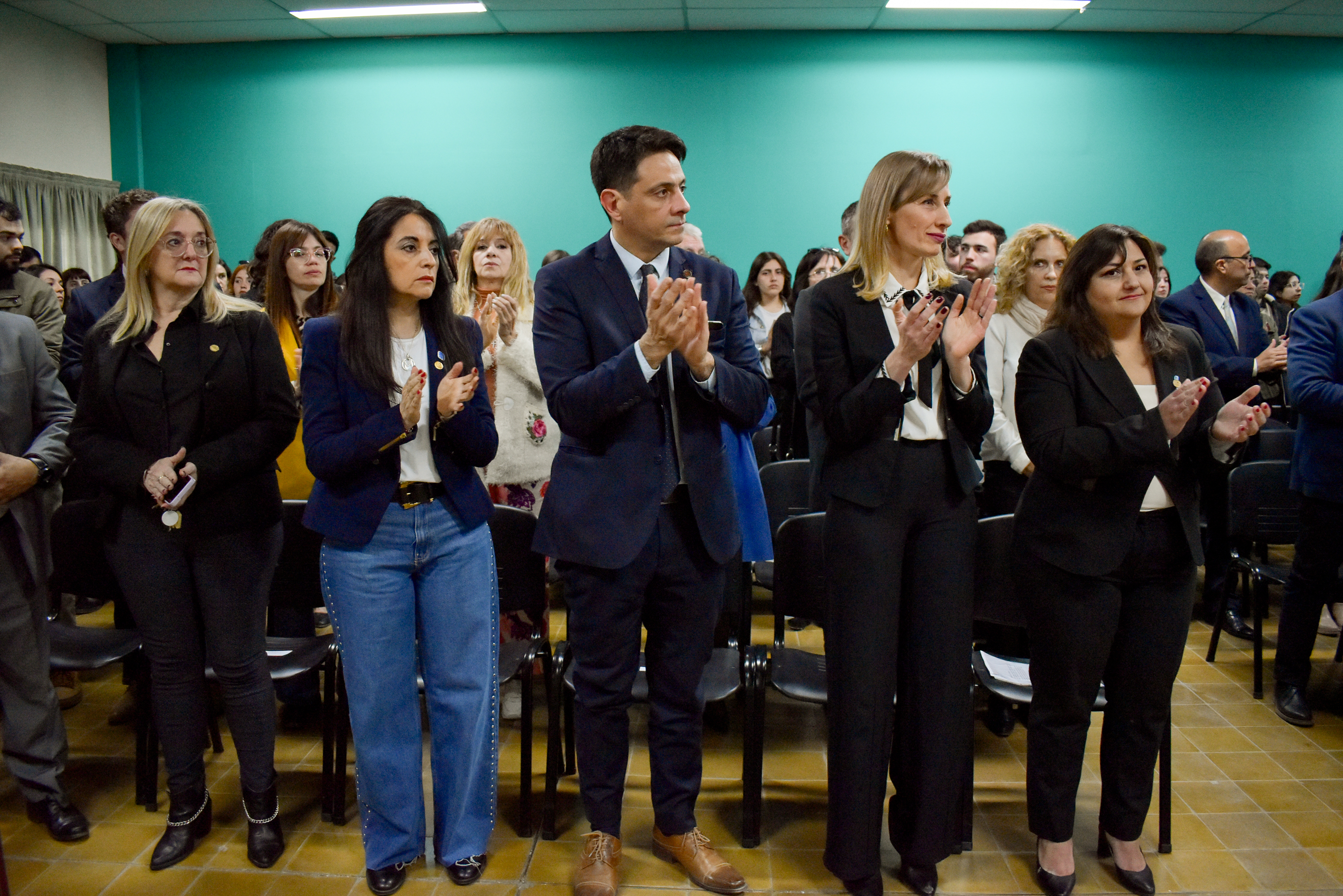 Acompañaron también la decana, decanos y vicedecanos y autoridades de otras facultades de la UNSJ; directores y directoras, secretarios y secretarias de Sociales. También asistieron al Acto aniversario las autoridades de los consejos profesionales de Ciencias Económicas, de Trabajo Social y Foro de Abogados; de los sindicatos docentes y nodocente; de la Federación Universitaria y del Centro de Estudiantes de la Facultad, además de docentes, nodocentes y estudiantes.
