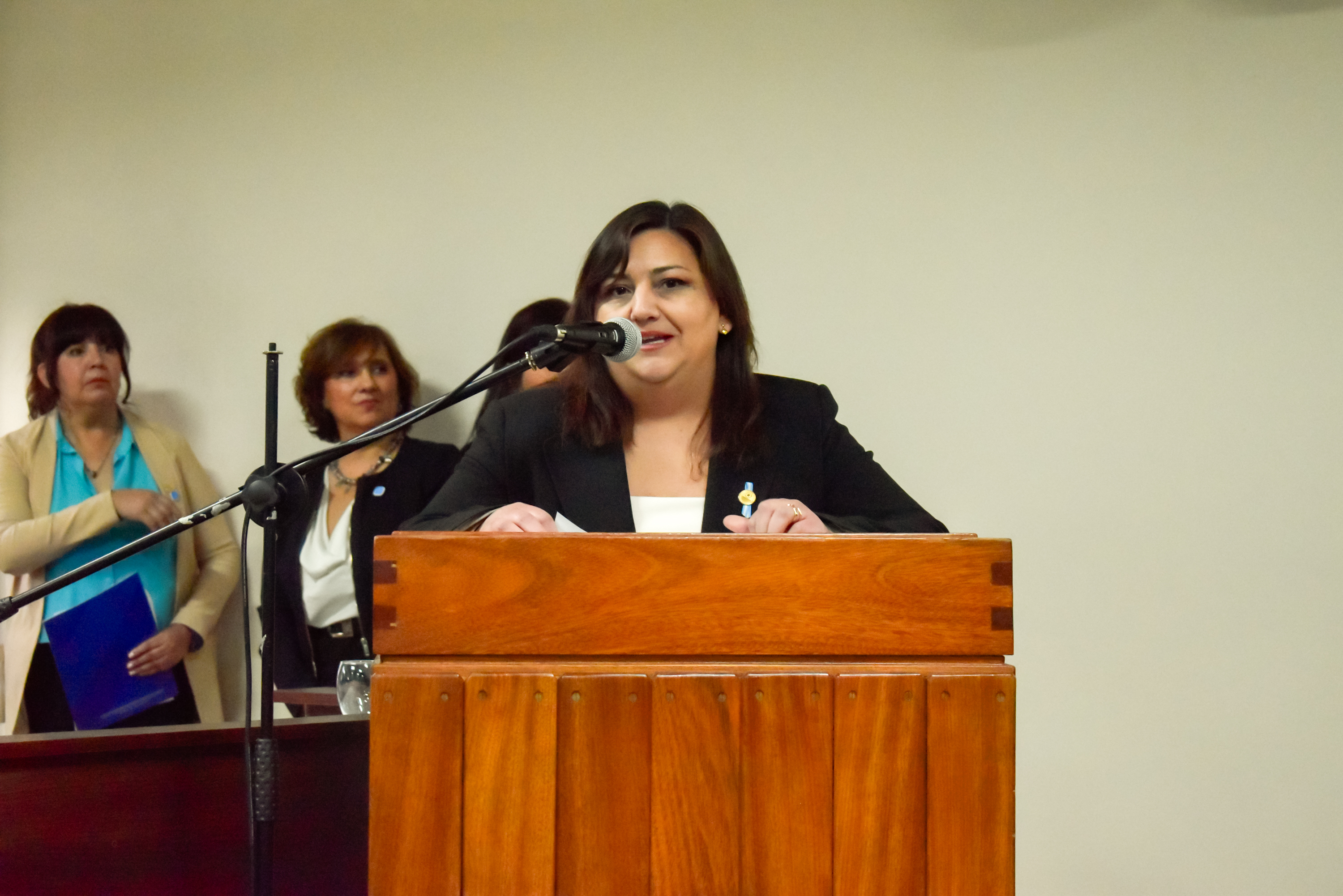 Celebrando la inauguración del Aula Estrado durante tan importante aniversario, la directora del Departamento de Ciencias Jurídicas, abogada Érica Martín, recordó sus tiempos como estudiante en la Facultad, la que representa su casa de formación y también su primer trabajo formal. "En los últimos años he tenido la posibilidad de cumplir algunos proyectos como es la inauguración de este Aula Estrado", dijo la directora. "Nosotros defendemos la necesidad de enseñar el Derecho de una manera distinta a la que tradicionalmente se nos ha enseñado. Esto es porque claramente nuestros estudiantes no van a compartir el mismo mundo laboral para el que nosotros hemos sido formados y es nuestra obligación como educadores formarlos en habilidades que les sean útiles en su futuro como profesionales del Derecho. Este aula nos va a permitir enseñar el Derecho aplicando un pensamiento crítico, un razonamiento lógico, un sentido práctico. Les va a permitir desarrollar dos cosas importantísimas que son la oralidad y la argumentación", expresó Érica Martín.